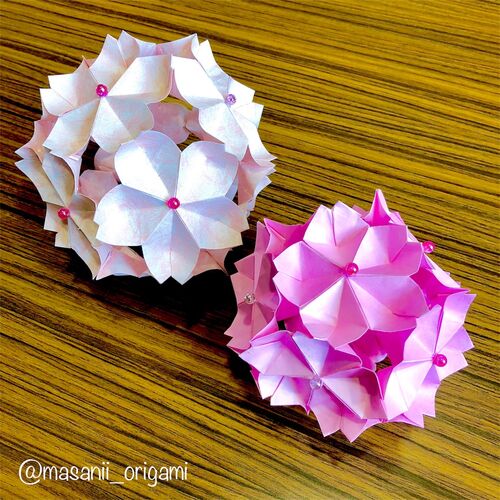 Tさんが、またもや素敵な作品を見せてくださいました。毎回、本当に片手で折ったのか疑ってしまうクオリティ。 紙のチョイスも素晴らしく、どちらの色も、春の爽やかさと鮮やかさを感じることができます。中心のビーズもナイス!どうやったらこんなセンスが…