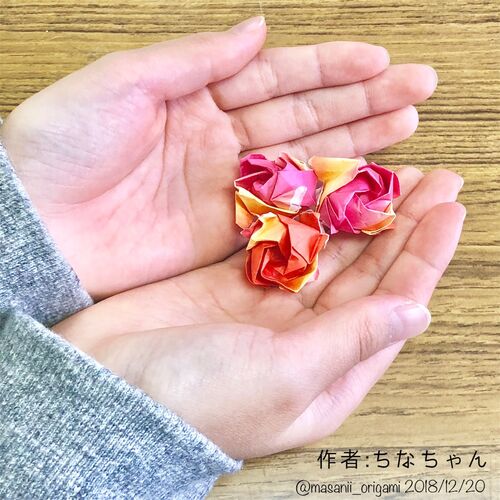 またもや進化した、ちなちゃんの折り紙スキル。 〜7.5cmの「連バラ」〜