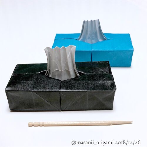 先日届いたばかりの「至高のおりがみ」。 作品第2弾は、谷田尚之さんの「箱ティッシュ」です。 「紙で紙を折る」という、折り紙の常識をブチ壊すアイディア。 ここまできたら、もう何でもアリな気がします。 昨日の「クリスマスツルー」といい、最近の折り…
