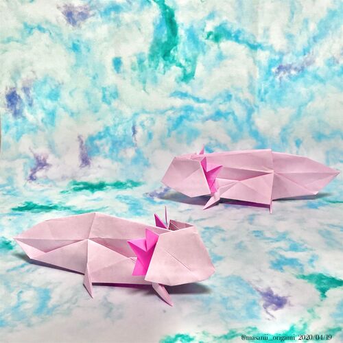 こんにちは、運動不足が深刻なまさにぃです。堂々と外出できる日が、早く来るといいですねぇ。 さて、今日は「ウーパールーパー」を折ってみました。 きれいな白色と、愛らしい表情が大人気のアレです。 最近は、ペットとして飼う人も増えましたね。 出典は…