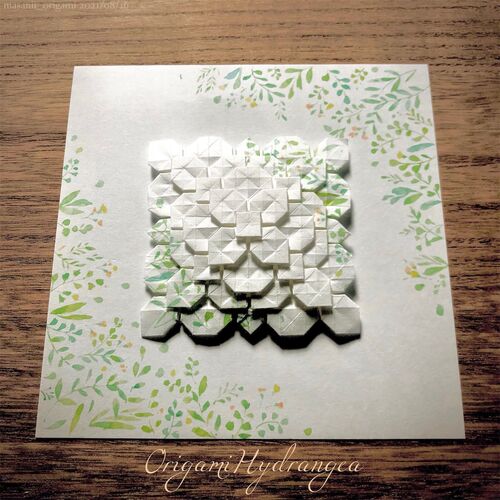 あじさい折り×ボタニカルの「花折りピラミッド」。/Flower Pyramid with botanical pattern