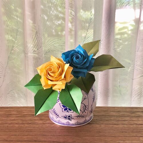 青&黄色の佐藤ローズ、図らずもウクライナカラーに!/Origami rose for Ukraina